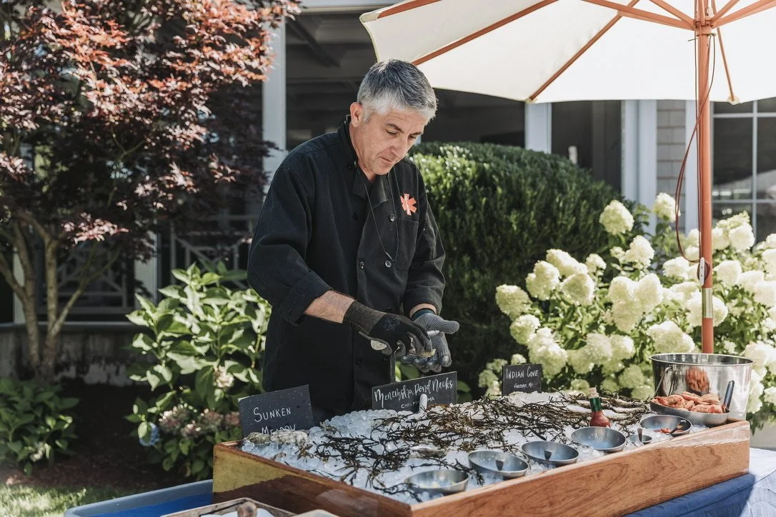 Every shucker working an event is either a shellfish grower or a fisherman. The people behind the table know the waters, the growing areas, and the product, and that knowledge shows in every detail. It’s a shared understanding that keeps the experience grounded and the standards high.
